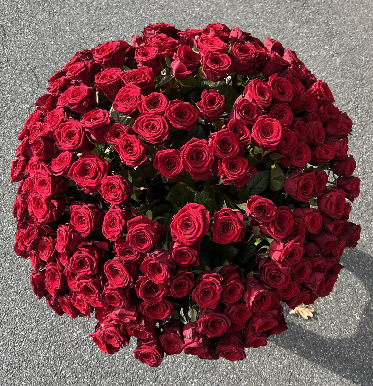 Bouquet de mariée rond composé de Roses blanches, Roses branchues roses, et de Freesias blancs